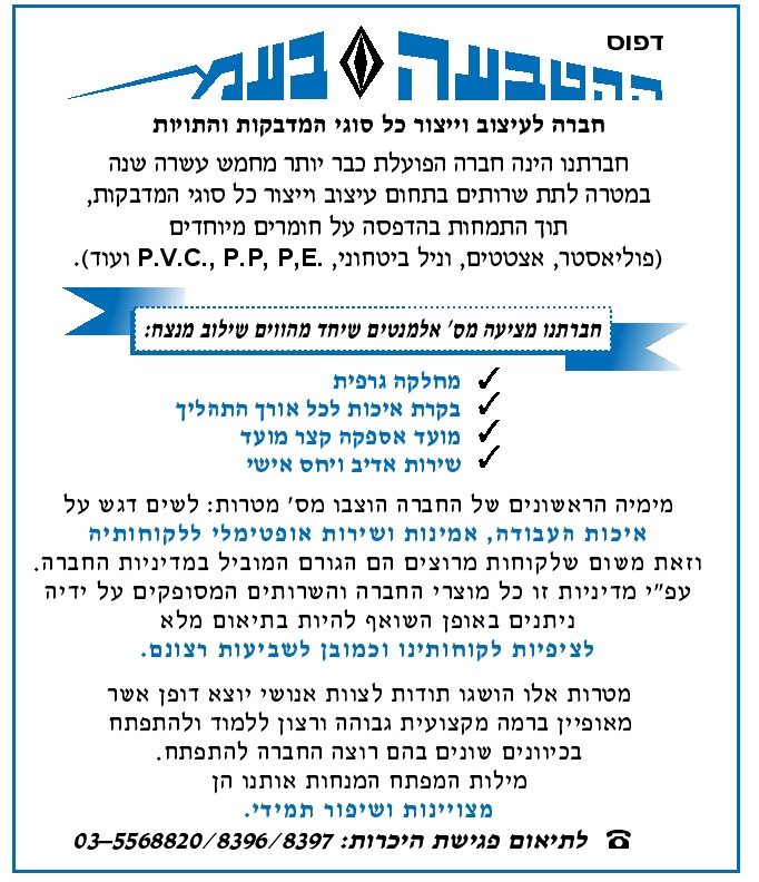 רח הסדנא 3,חולון א.ת .58814 ת.ד 1871 חולון 588117